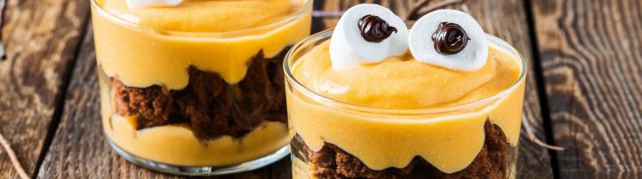 Süßes Kürbis-Dessert Ob zur Halloween-Party, zum Geburtstag oder einfach so: Diese lustig-angerichtete Nachspeise kommt bestimmt bei Groß und Klein gut an……